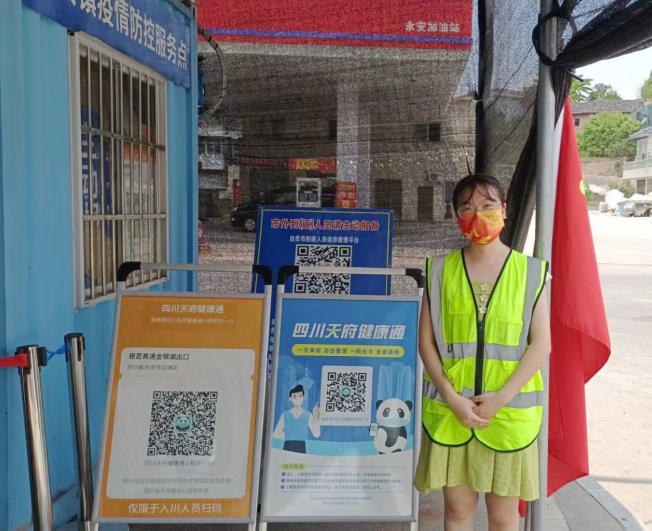四川省自贡市永安镇“每年的寒暑假我都会力所能及地投入到家乡的志愿服务活动中。作为绵职学子,能够为家乡的疫情防控做些事情,这不仅是一种经历,更是我义不容辞的责任和义务。当志愿者的经历将会是我一笔宝贵的人生财富。愿我们携起手来,共同抗疫!”