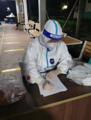 四川省成都市成华区长天路街道“自成都七月份爆发疫情之后,作为一名入党积极分子,更有义务为社会服务,投身到疫情防控工作中。在志愿工作过程中,我需要穿着防护服,提醒前来做核酸的人打开健康码,调亮屏幕等等。尽管很累,但我感到很开心。能够成为一名志愿者,参与到疫情防控的工作中,无比光荣。”