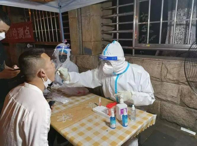 8月28日下午2点半,民盟崇州市支部盟员、崇州市人民医院医生潘鼎被单位抽调集合,工作至凌晨1点支援锦江区牛市口街道社区核酸采样,单人完成700余人次采样。