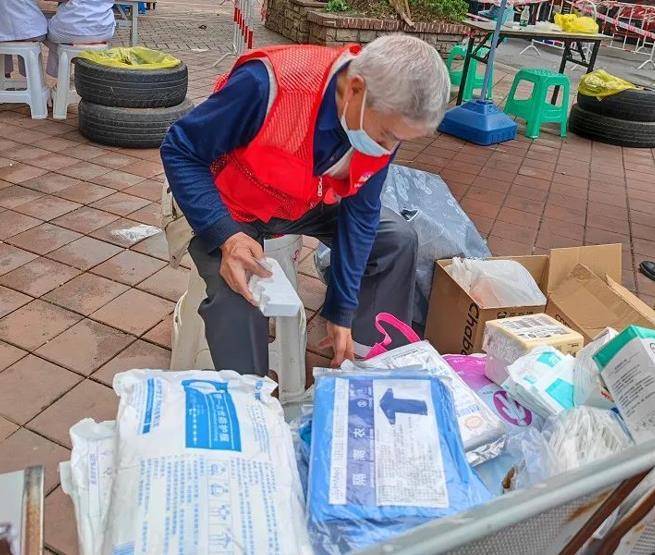 9月1日中午,成都市发布全员核酸检测通告后,古稀之年的郫都区盟员杨景象第一时间报名了社区志愿者服务队。9月1日下午三点半,在书院社区的安排下,杨景象来到龙湖佛莱明戈小区门口,以志愿者身份为即将开始的“全员核酸检测”整理医用材料、药械物资。