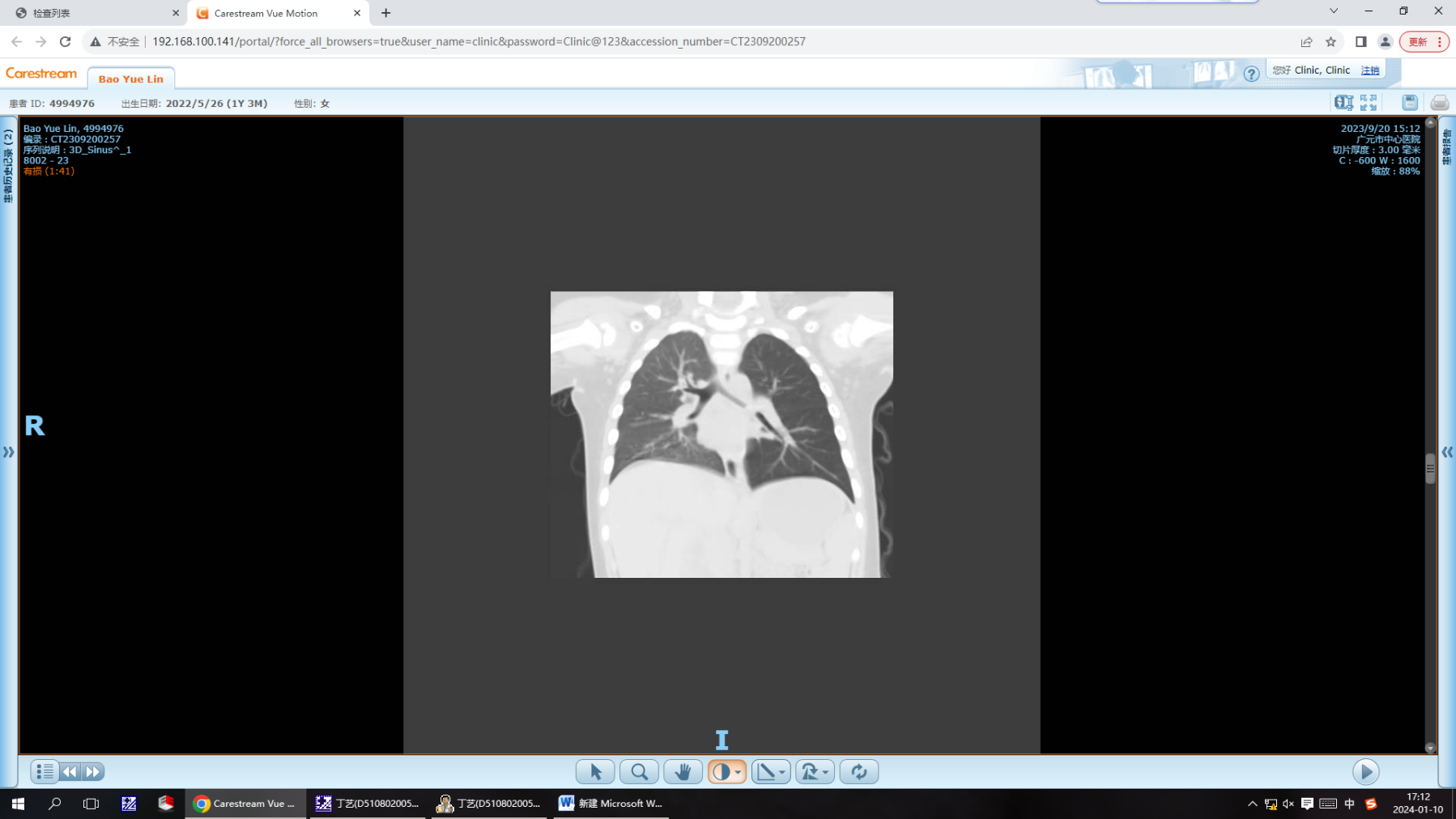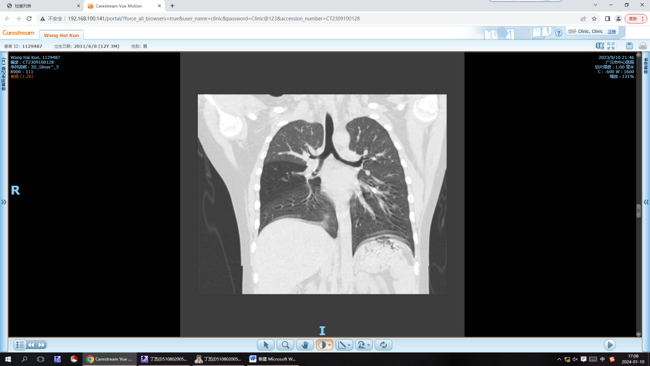 案例一:前不久,来自旺苍年仅1岁3个月的包小妹,因进食花生后呛咳2天,在县妇幼保健院诊治无效后,遂转到广元市中心医院儿科就诊。入院后儿科医护人员根据病历以及诊治情况,初步诊断怀疑气道可能存在异物,第一时间为患儿进行了CT检查,检查结果显示:左主支气管分叉处结节状密度增高影,左肺透亮度稍增高,考虑支气管异物并左肺阻塞性肺气肿。