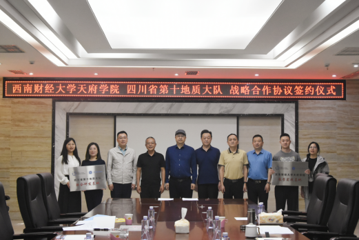 苏画与刘强分别代表双方在协议上签字。学校向四川省第十地质大队授牌教学实践基地,四川省第十地质大队向学校授牌联合研发基地。(程雪)