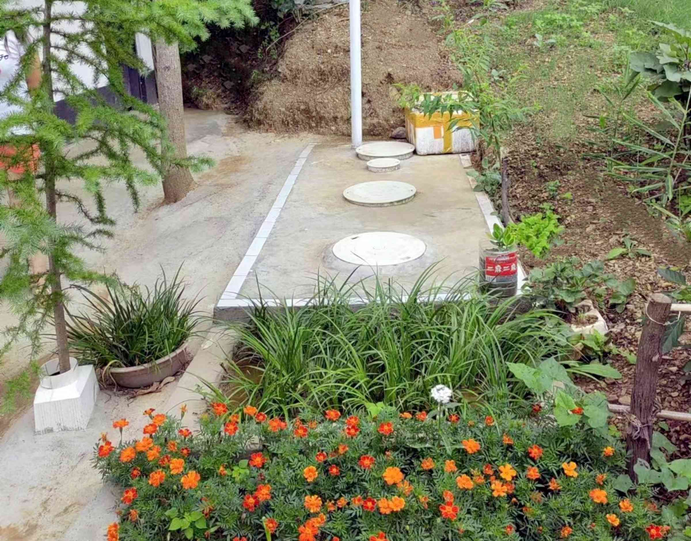 在水磨沟镇菜坝河村群众王成全家的卫生间,只见地面、墙面都贴上了洁白的瓷砖,热水器、洗手池、冲水便池一应俱全;屋外的单户三格式+污水池+人工湿地 (厕污共治) 五格化粪池,与地面合为一体,无臭、无蝇虫飞,污水经过粪池发酵、腐熟、沉淀后,可以直接用来浇灌院子外的几分菜园地。
