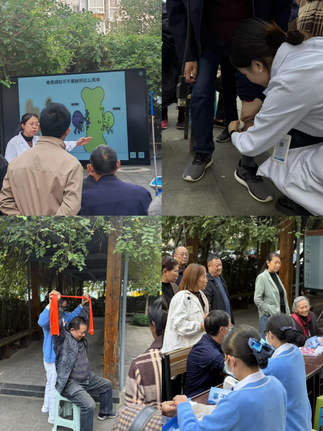 义诊活动现场,内分泌科·老年病科主任张红军及其团队医护人员凭借丰富的临床经验和专业知识,认真地为每一位前来咨询的居民进行检查,耐心解答他们关于骨质疏松、肌少症及各类健康问题的疑惑,给出个性化的建议和治疗方案。