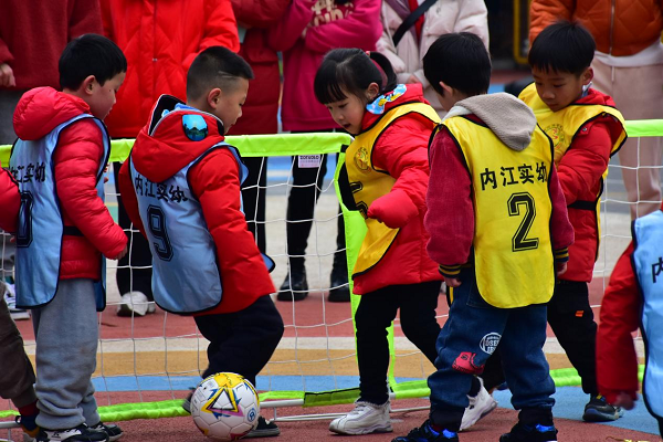 伴随着冬日的暖阳,满怀着喜悦的心情,专家和老师们观看了内江实幼第一届“童梦杯”趣味足球赛。小小运动员们在赛场上展现了顽强拼搏的精神,给我们带来了一场精彩的足球比赛。接着,专家和老师们观看了“大手牵小手,‘足’享嘉年华”大带小游园活动。老师们巧用材料,合理布置场地,运用足球游戏充分调动孩子们活动的积极性。最后,课题负责人邓幸做了《基于儿童本位的足球游戏园本课程实践与研究》开题报告,着重从课题产生的背景、研究的理论基础、课题界定等六大方面进行了详细的讲解。