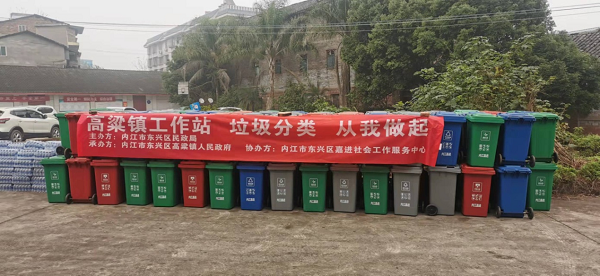 11月16日上午内江市东兴区民政局,内江市高梁镇人民政府及嘉进社会工作服务中心共同开了"高梁镇工作站,垃圾分类,从我做起”的主题活动,并发放了134个垃圾桶,150件矿泉水及垃圾袋等。嘉进社会工作服务中心志愿者们早早的到达现场摆放物资及拉起横幅。
