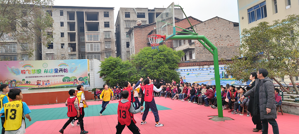 影响四川达州讯 为营造奋进的校园文化氛围,发扬同学们的团结协作精神,将“双减”工作落实落地。2021年12月6日,达州市达川区麻柳镇东兴中心小学第一届学生篮球运动会拉开了帷幕。