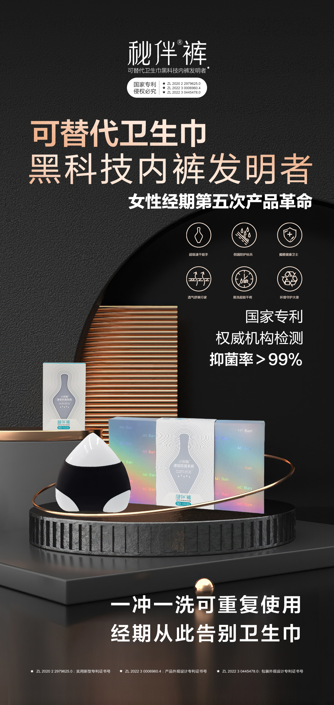 2022年,女性经期黑科技产品-一秘伴裤,正式问世!颠覆百年经期体验,女性将迎来全新的经期生活方式,从此告别侧漏闷热,告别异味过敏,告别频繁更换与异物感,以更自由更健康更舒适的状态轻松度过生理期!
