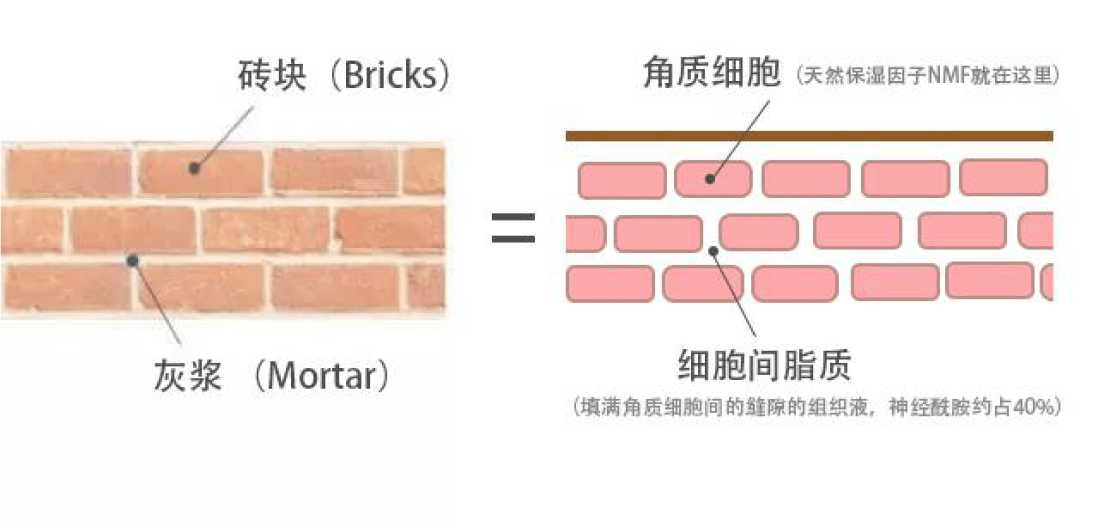 神经酰胺(Ceramide)是皮肤角质层的“砖墙”结构,是一种天然存在于皮肤中的重要成分,由长链脂肪酸与鞘氨醇的氨基缩合反应形成。在角质层脂质中,约40%~50%由神经酰胺构成,它类似于皮肤的天然保护层,作为肌肤最外层0.2mm的守护者,能够有效地阻挡外部有害物质的侵入,改善皮肤屏障功能,帮助肌肤保持年轻和健康。