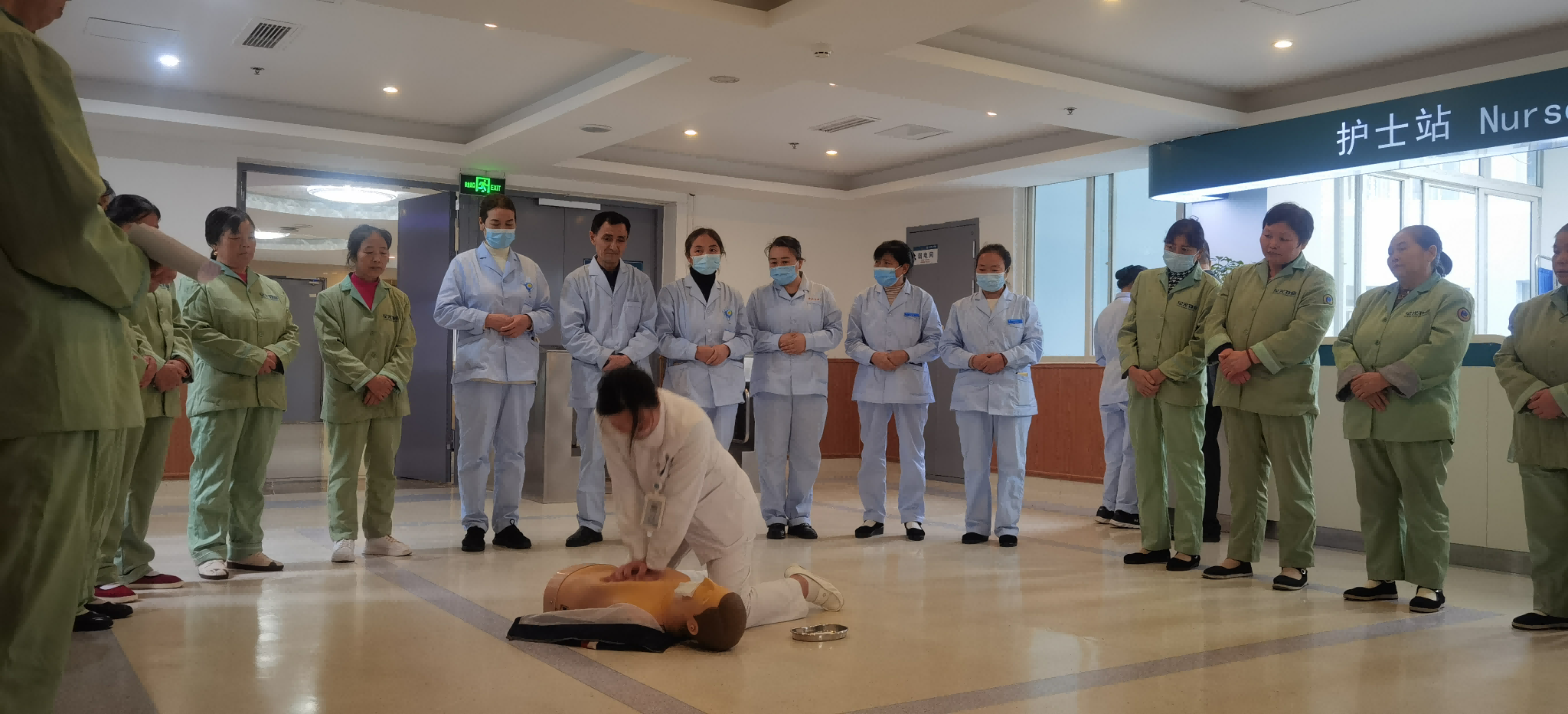 活动当天下午16时,培训活动在医院肿瘤科、血液内科病区准时开始。首先,科室主管护师梁霞进行徒手心肺复苏术操作演示及回复示教,通过理论讲解与实际操作演示相结合的方式,深入浅出地讲解了心肺复苏的重要性、实施步骤及注意事项。护工们聚精会神,认真记录每一个细节,并在随后的实操环节中,分组进行练习,体验心肺复苏的全过程。在梁霞的耐心指导与鼓励下,每位护工都熟练掌握了正确的按压深度、频率及通气技巧,为应对紧急突发状况打下了坚实的基础。
