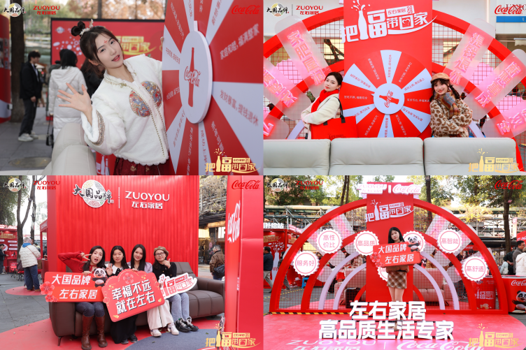 本次新春快闪活动正是基于双方共同理念的合作成果,旨在传递新年幸福的热闹氛围,让消费者度过快乐的新春时光,这次携手合作,左右家居以「把福带回家」为主题,打造颇具新鲜感的新春活动,做到与各年龄段的用户玩在一起,进一步强化品牌年轻化形象,有效地抓住年轻消费者,同时也为可口可乐增添中国家居的新年氛围,双方品牌希冀在新的一年里,能够让幸福品质生活走进千万家,共同为用户打造美好的生活体验。