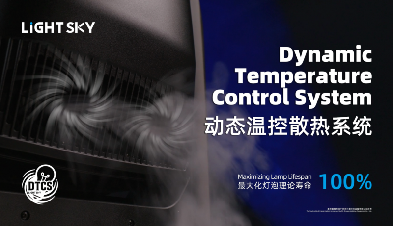 为解决这一行业长期存在的技术挑战,LiGHT SKY 研发并推出 DTCS动态温控散热系统(Dynamic Temperature Control System)。该系统通过创新的散热结构设计,使光源组件在运行过程中保持更加均衡稳定的温度状态,避免出现局部过冷或过热的情况,从而实现更加精准的温度控制。