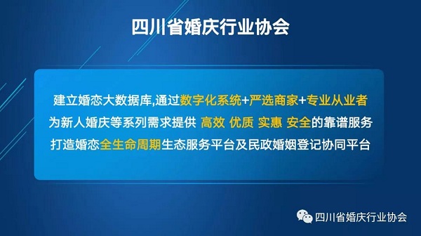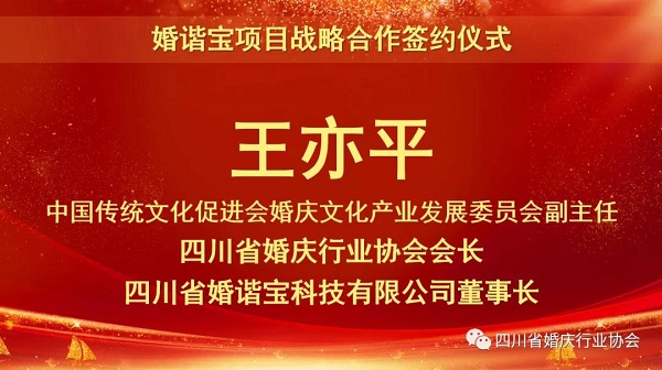 非常感谢工商银行对项目的高度认同和鼎力支持,感谢民政部门对该项目的认同和期待,感谢与会代表的支持和参与;作为《婚谐宝》项目创始人,深感责任重大,签约仪式的圆满举行,只是万里长征的第一步,随后将带领运营团队,努力工作、不辱使命,持续不断地完成阶段性目标,为践行四川省婚庆行业协会的办会理念:“搭建平台、异业聚合、服务会员、惠泽新人”而做出更大的成绩。
