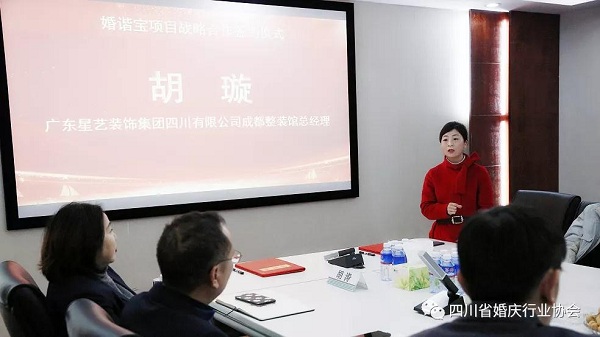 省婚协合作企业代表:广东星艺装饰集团四川有限公司成都整装馆总经理胡璇代表董事长程碧出席并发言。